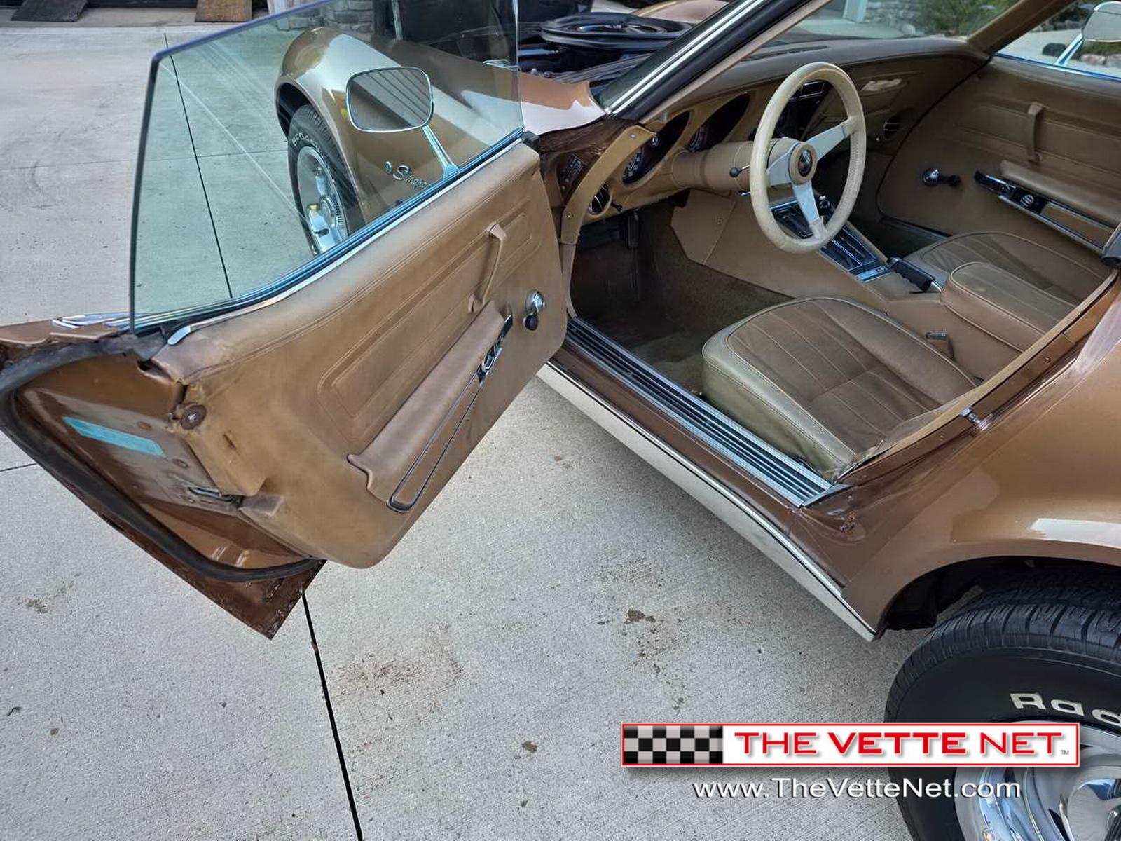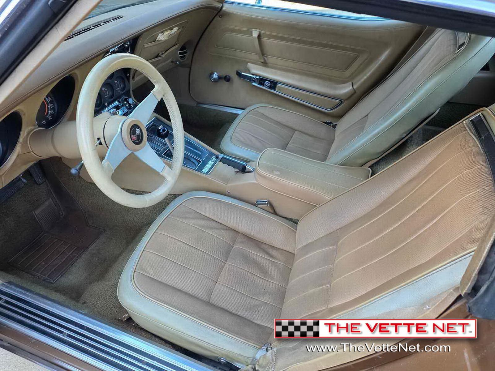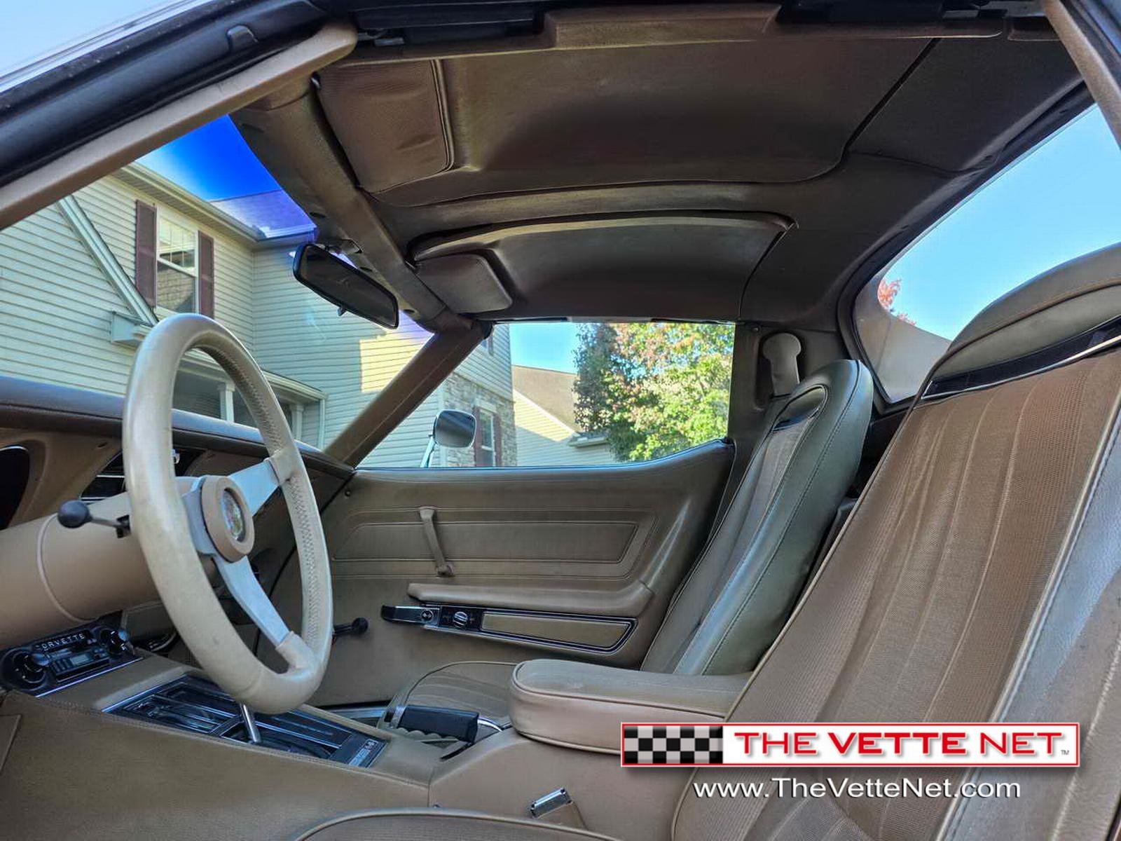 We are pleased to bring to your attention a veritable time capsule, a 1975 Coupe dressed in Medium Saddle, reminiscent of the exuberant 70s... This Vette has only 54K actual miles and is pretty much all original, however, it just sustained a thorough rejuvenation with lots of new parts and upgrades, like: Headlight regulators, Radiator, Belts, Hoses, Heater core, Brakes (master cylinder, brake lines, combination valve, calipers), Battery, Rear spring was replaced in the past. All gauges work, All lights work, Wipers work, new blades, Radio works. AC is all there, will need charged. Has new seals and held a vacuum. Tires have plenty of tread. Has T-top bags and comes with original paperwork and build sheet.