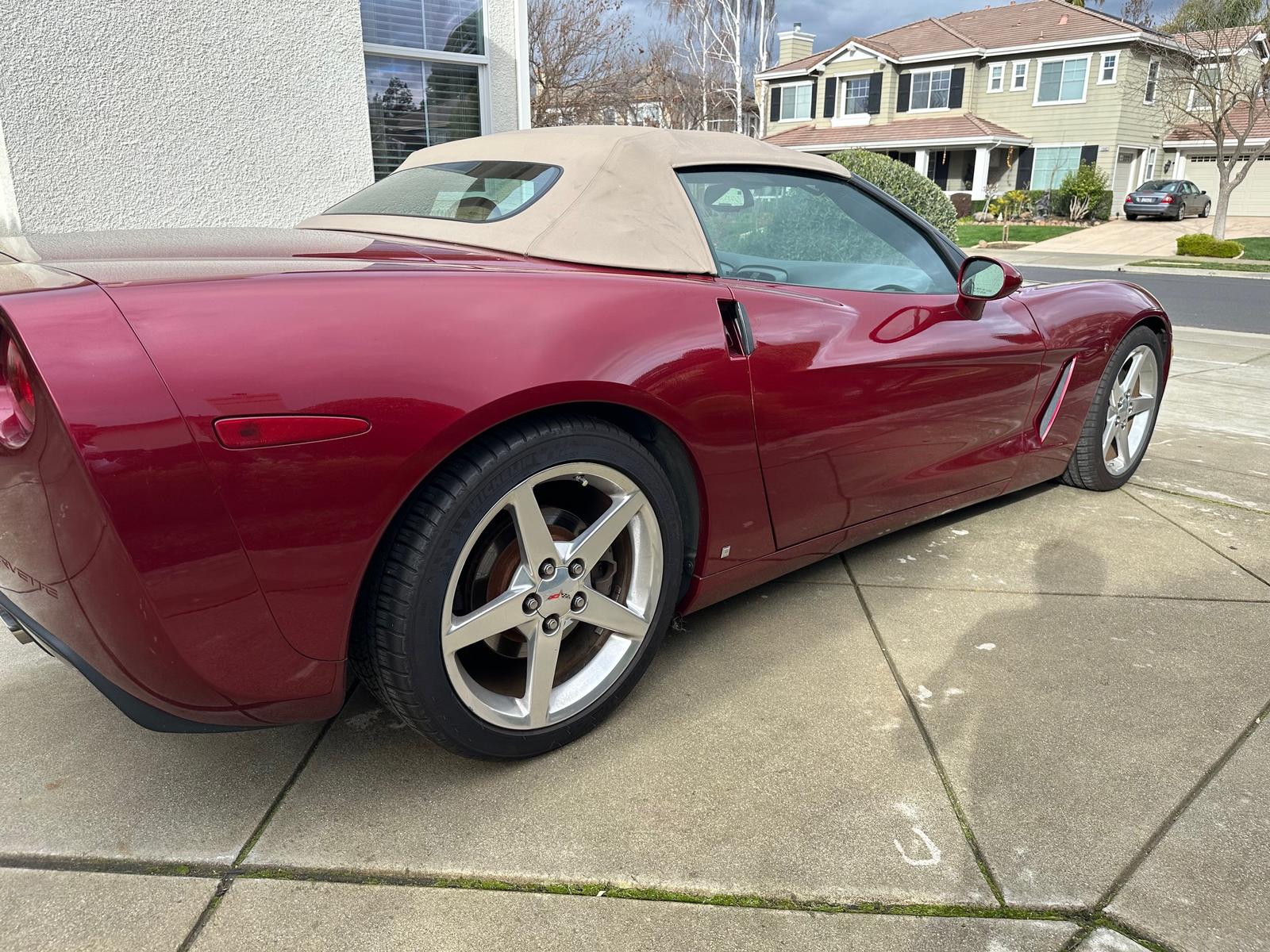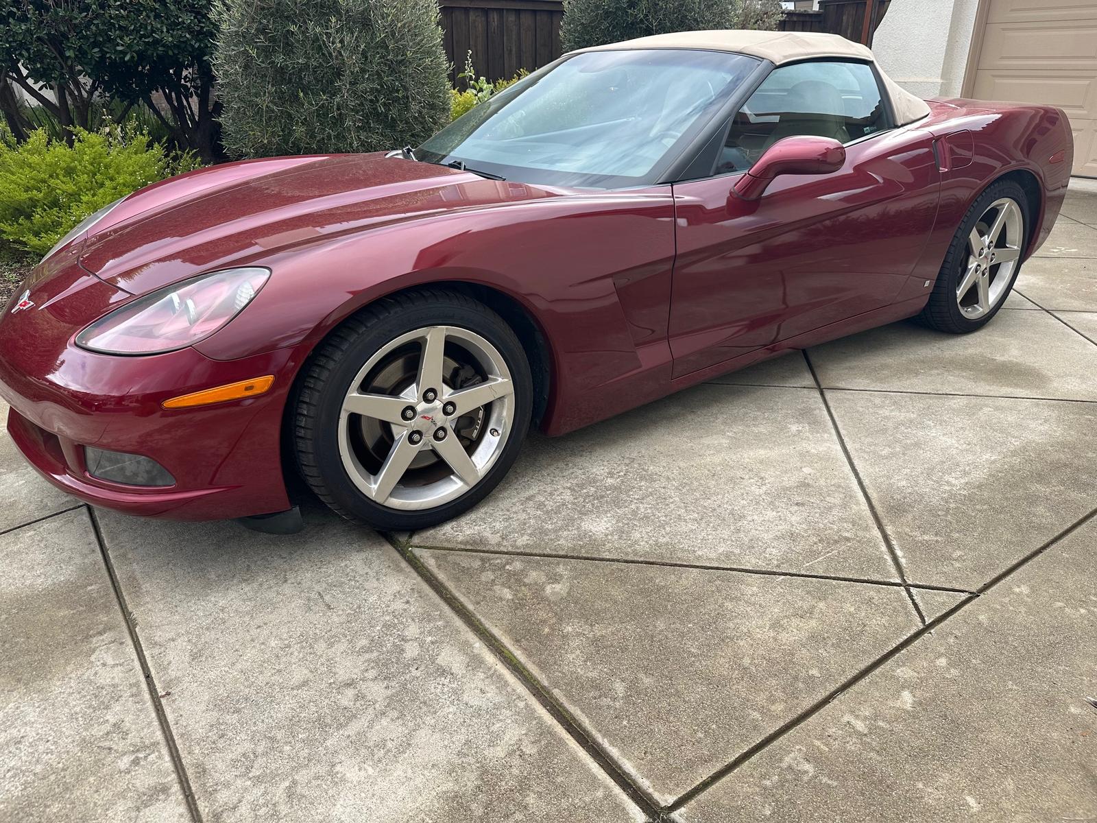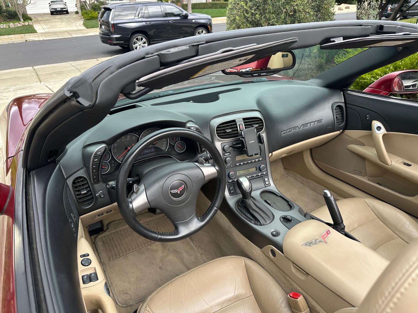 Beautiful and well-maintained 2006 Chevrolet Corvette Convertible in burgundy with a tan interior, boasting just 60,000 miles. This C6 offers classic Corvette performance, comfort, and open-air driving.